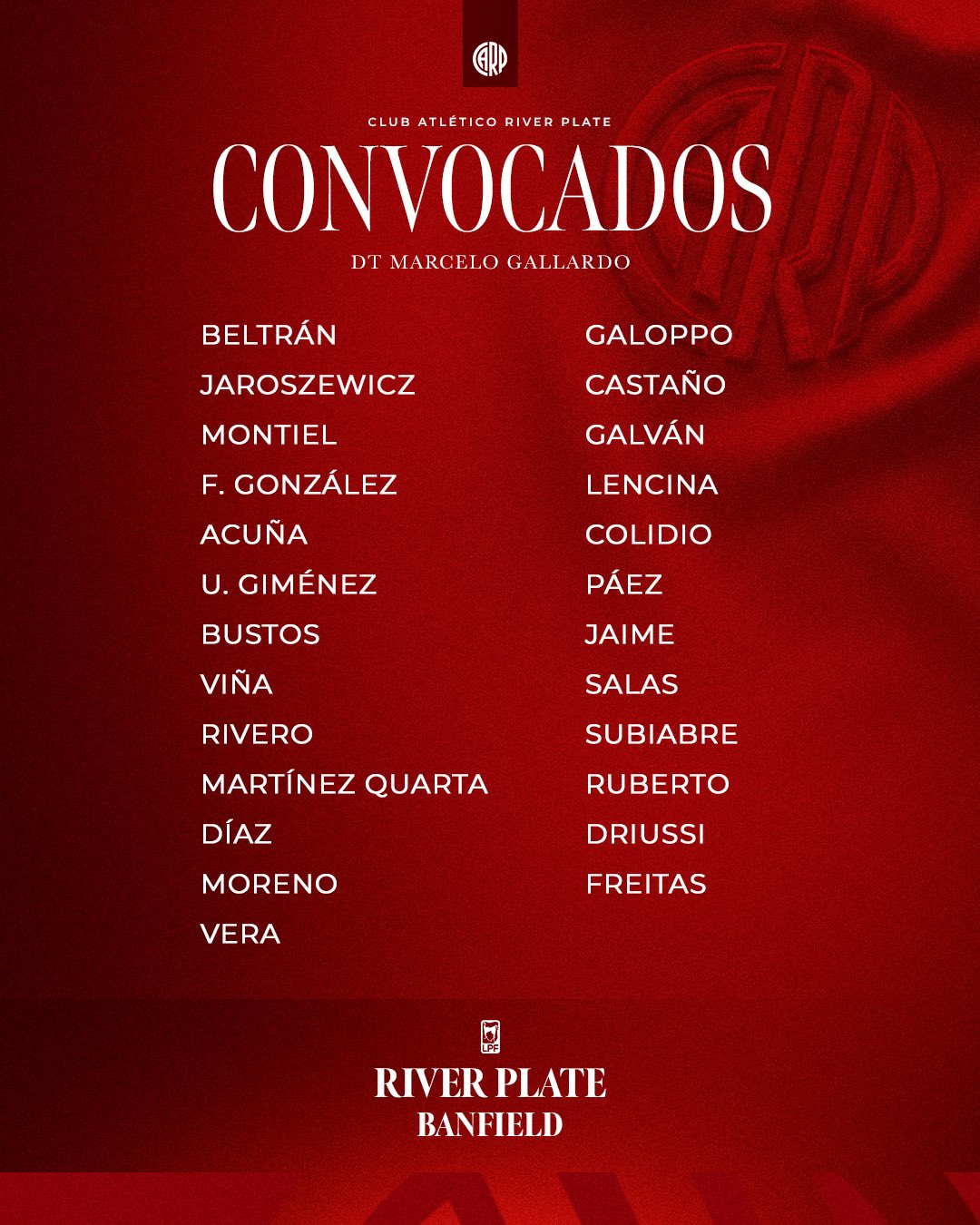 Apertura 2026 - Convocados para visitar a Vélez